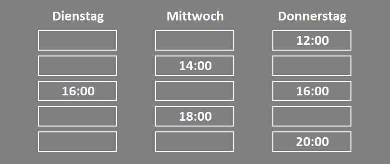 Bei Skype-Slots werden mit dem Skype-Scout vorher schon feste Termine vereinbart und diese stehen dann in unserem System zu Verfügung und können wo leichter und schneller vergeben werden. Insbesondere in Hinsicht auf kurzfristige Bewerbungen sind so Termine am Mittwoch und Donnerstag interessant die dann des öfteren zu einem Termin noch am selben Tag kurz nach Einladung vergeben werden können.